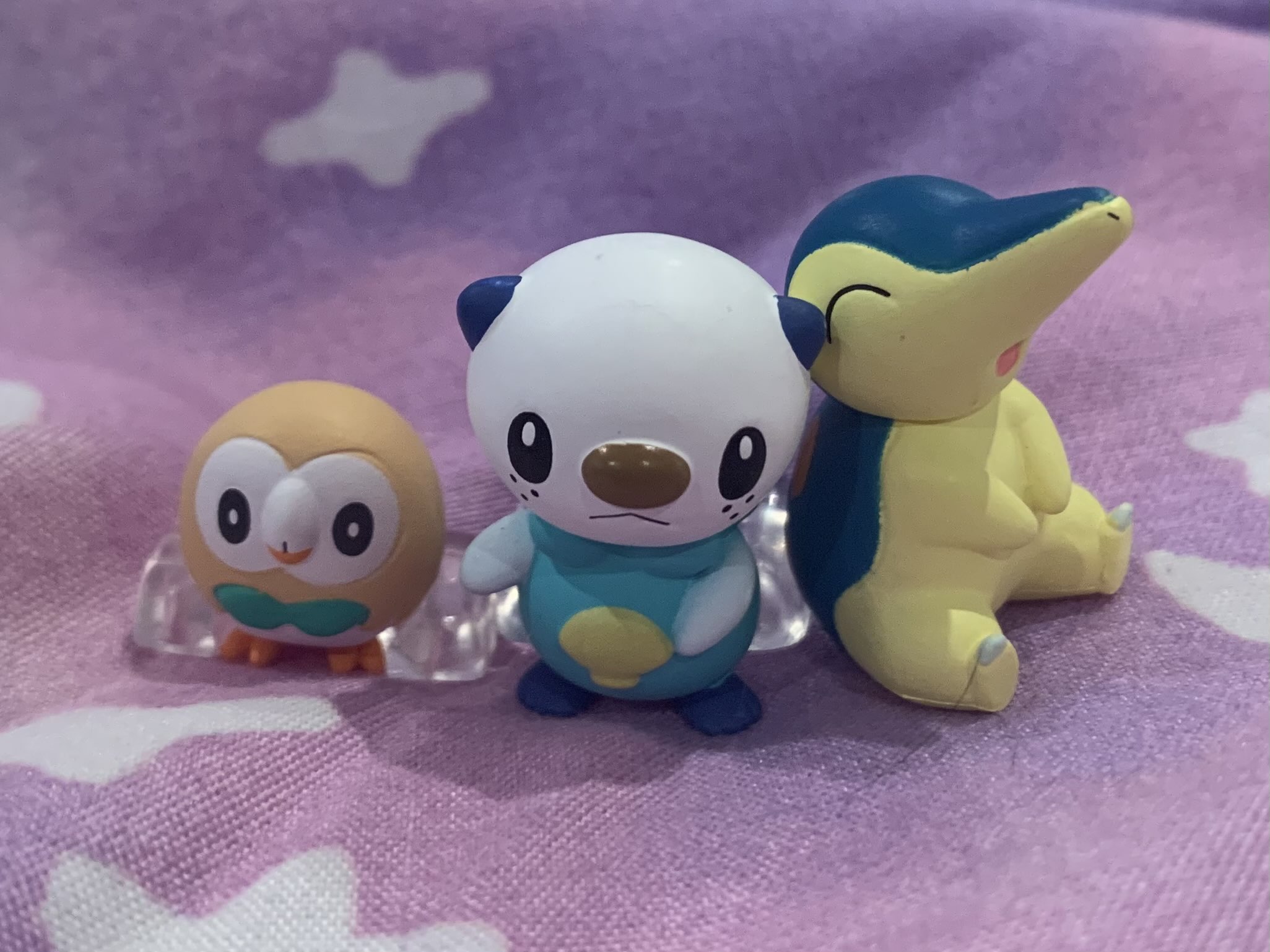 | The 25th anniversary of Pokemon brought a ton of new merch, including a parade figure set! These are weightier decorative pieces, and also very fragile! Figures including the other starters are also in this set; you can put them all together to make one big parade!My only gripe is that Oshawott does not have his freckles!